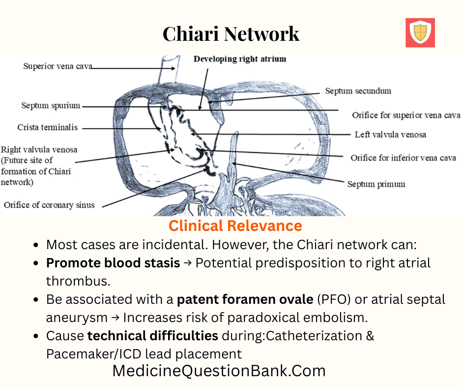 • Clinical impact Usually incidental; may entangle pacemaker leads or redirect flow toward a PFO facilitating paradoxical embolism.