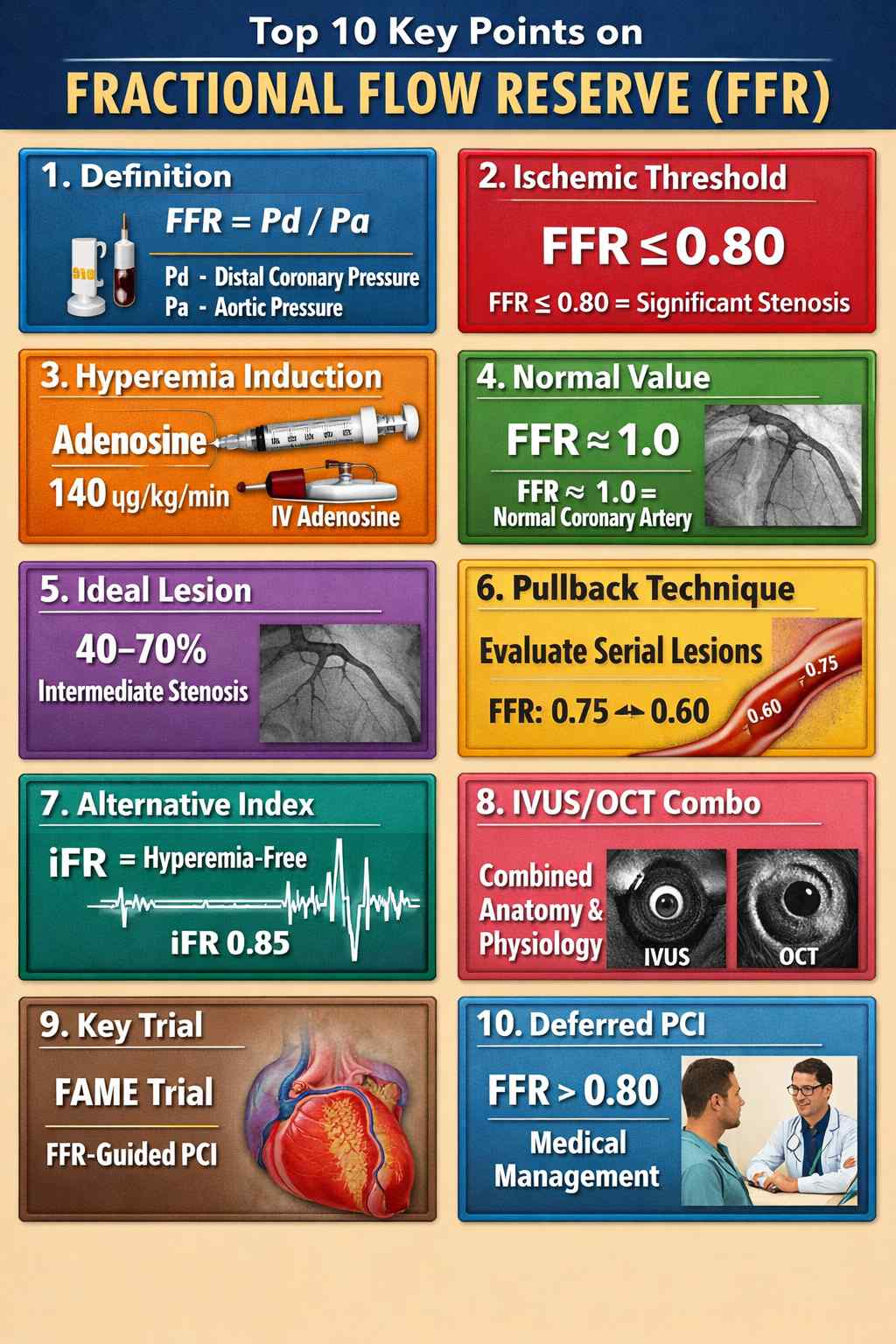 one-liners on Fractional Flow Reserve useful for NEET-SS / DM Cardiology exams: