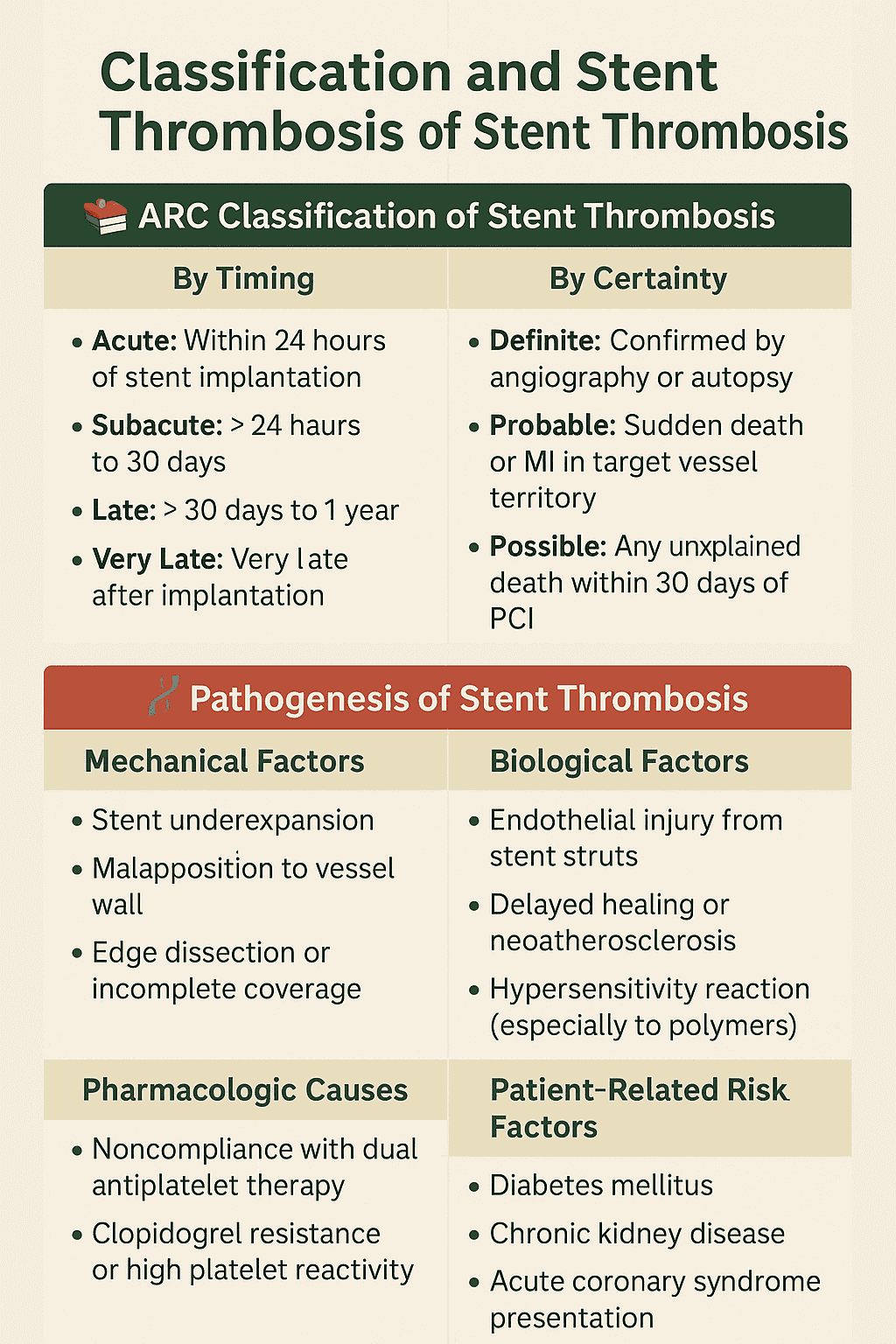 💬 Early thrombosis is often procedural—e.g., underexpansion, dissection, or poor apposition.