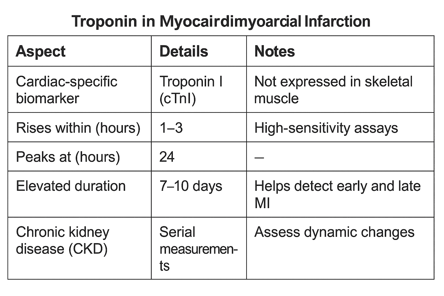 - Troponin assays vary between labs, so clinicians must be familiar with the specific reference values used in their institutions.